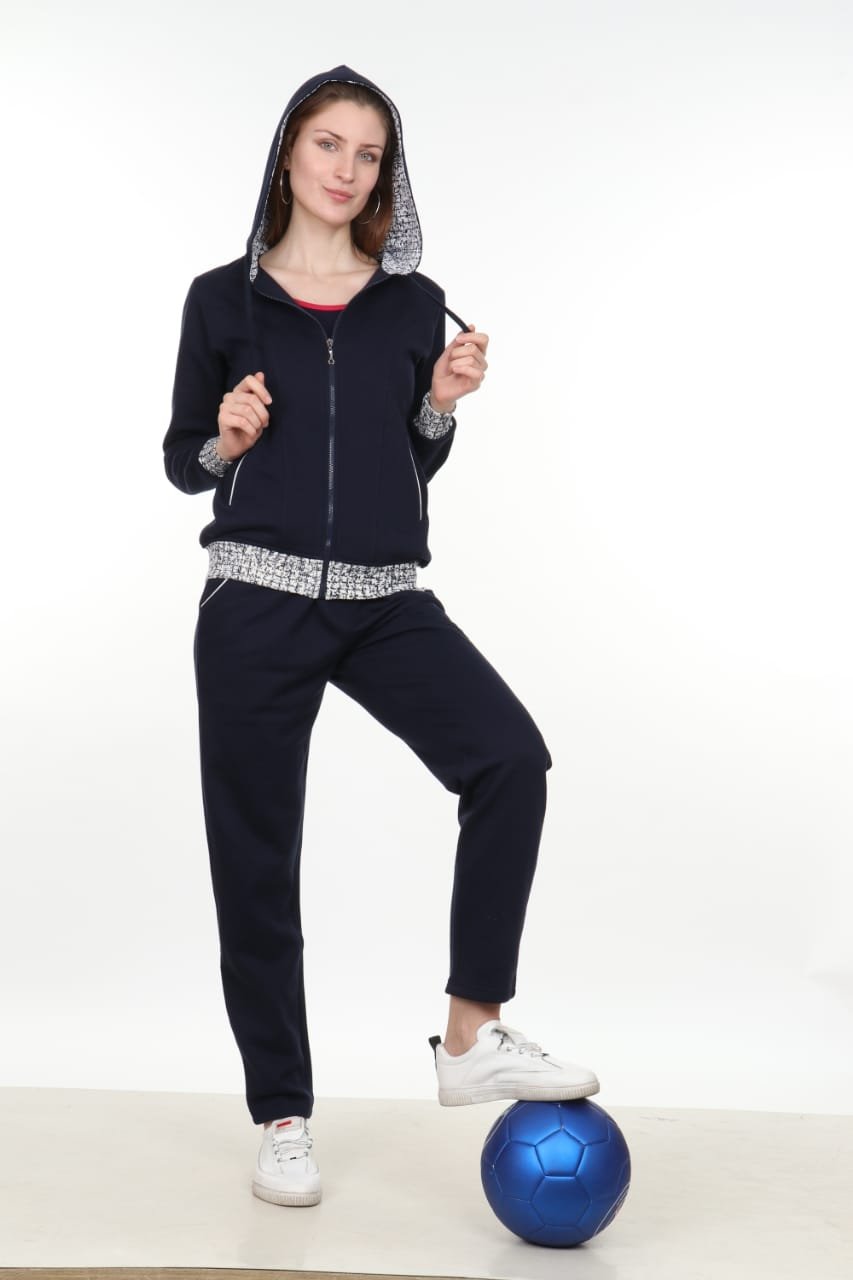 Thoughtful Design Details: The contrasting geometric print lining in the hood adds a unique designer touch that sets this tracksuit apart from basic athletic wear. The sophisticated navy color is universally flattering and easy to style with various accessories and footwear.