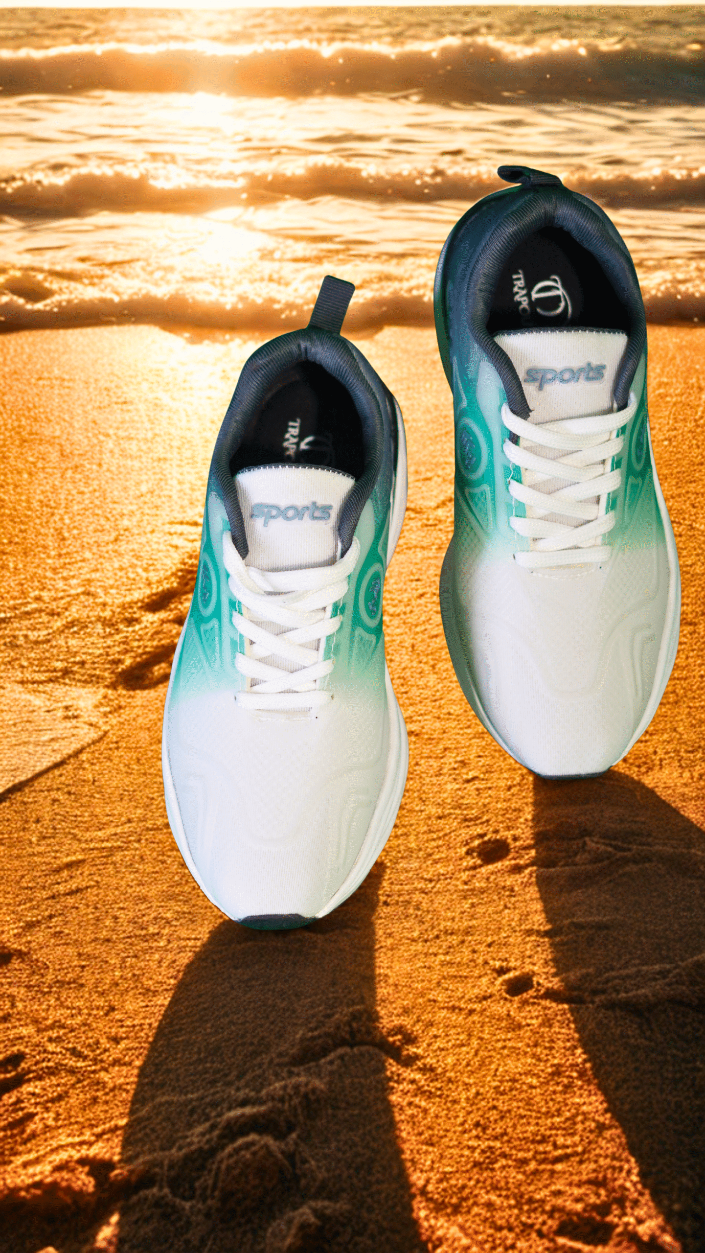 Transform your athletic performance and everyday style with the Trapout SPS-01-A gradient colorblock sports shoes, the perfect fusion of cutting-edge design and advanced comfort technology. These premium men’s running sneakers feature an eye-catching aqua green to white ombre colorway that sets you apart while delivering uncompromising performance across all activities.